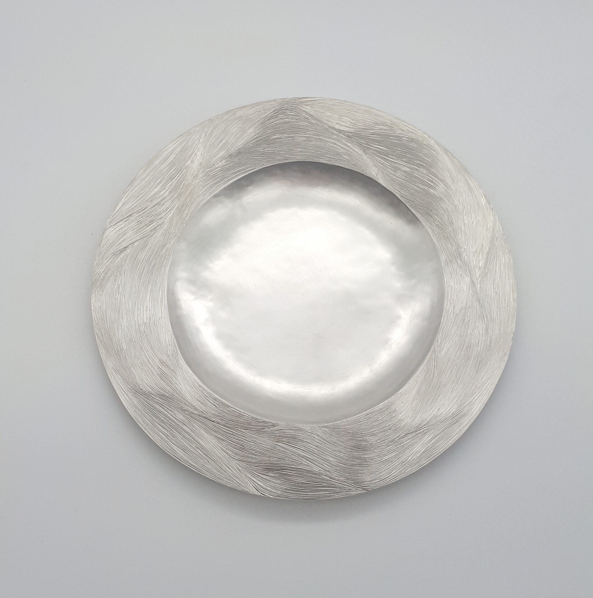 My inspiration stems from my home island of Guernsey. The natural beauty of the island’s coastlines inspires the flowing lines and forms within my work, combining soft aquatic surface lines and denser textures to reflect turbulent rockfaces and waves. Working predominantly in silver, I use a combination of engraving and repousse to achieve the details which provide dynamic light play to the surfaces of my pieces.
